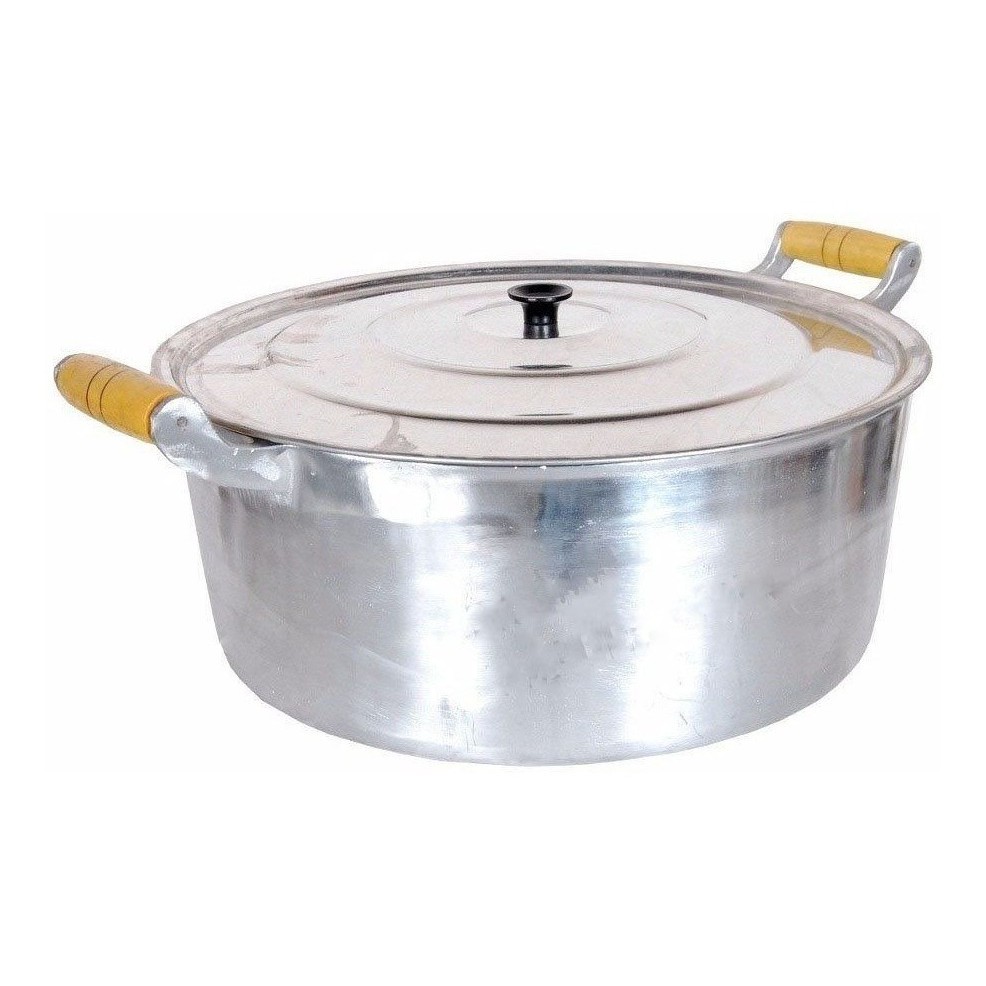 Panela Grande N 28 Caçarola Aluminio Batido Fundido Grosso Polido Para Restaurante Alça de Madeira com Tampa