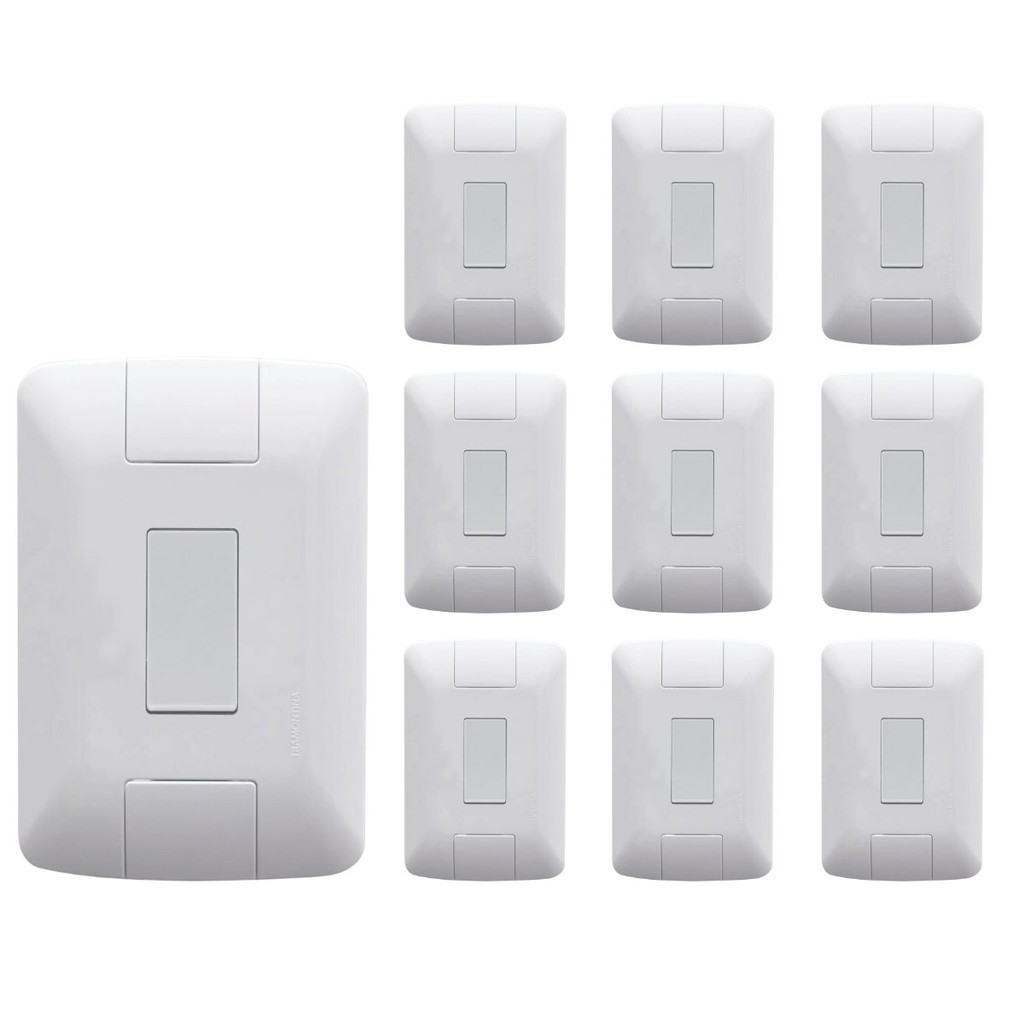 Kit 10 Interruptor 1 Tecla Simples 10A Com Placa Espelho Branco Bivolt 127v e 250v