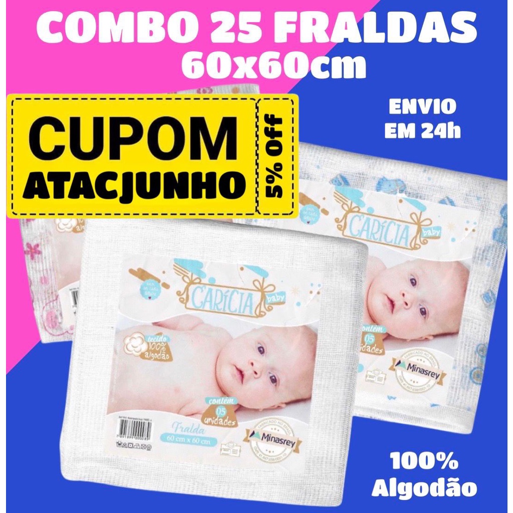 kit 25 FRALDA DE PANO Para bebê - 5 PACOTES Fralda simples 60x60 minasrey