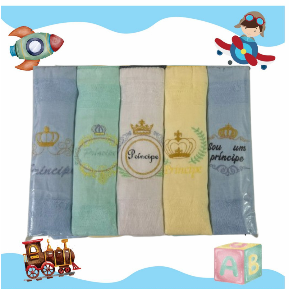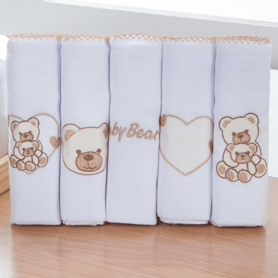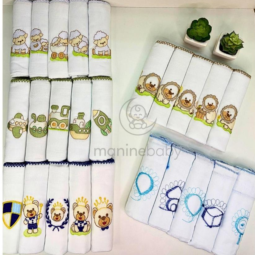 Kit Fralda de Pano Bordada para Bebê 100% Algodão Menina e Menino 5 unid Fralda de pano para bebe