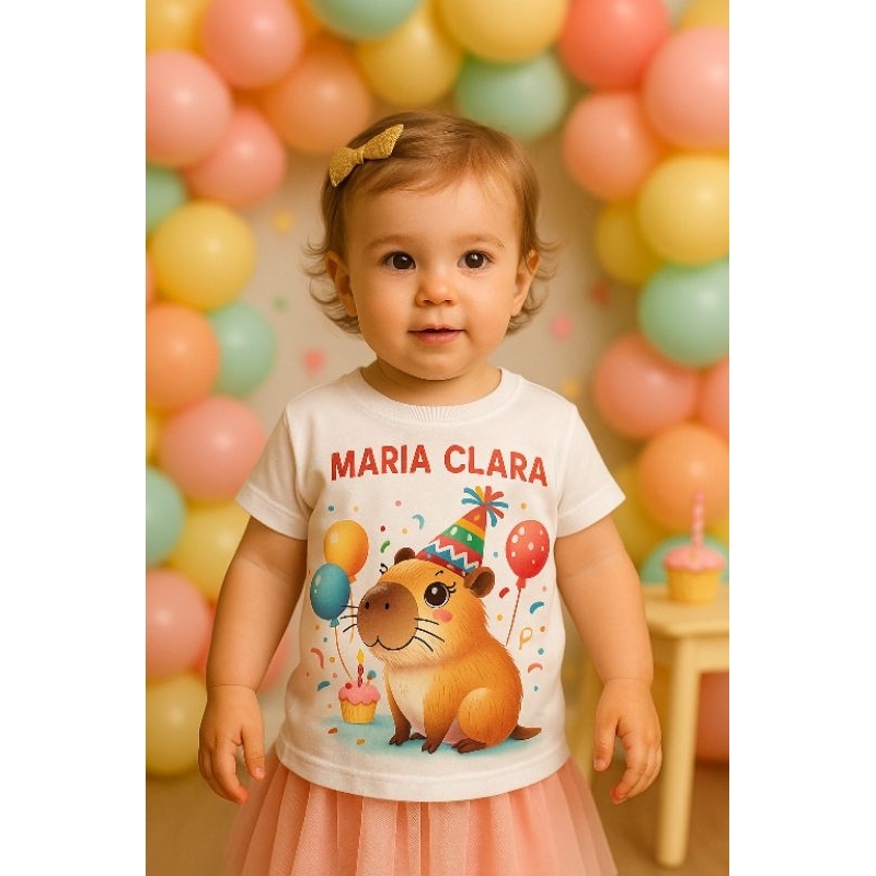 Camiseta menina Infantil e Juvenil Festa Capivara Personalizada – Algodão Premium 2 ao GG Conforto e Qualidade