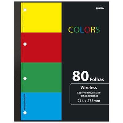 Caderno universitário 1x1 80 folhas coladas wireless Colors Spiral 1 UN