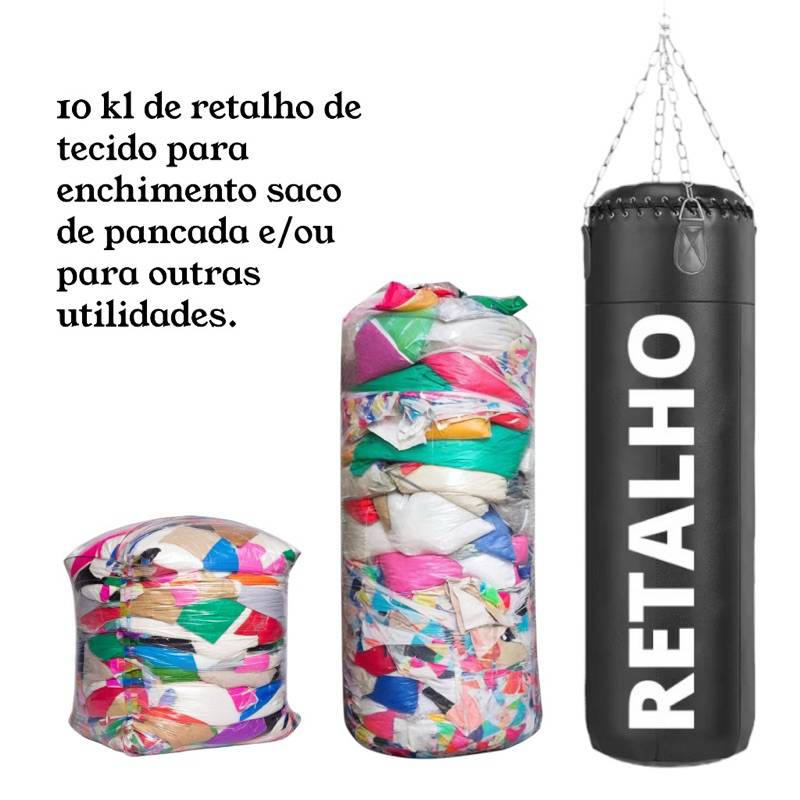 Kit 10 Kg Retalho tecidos malha e outro tecido para enchimento de sacos de pancadas e almofadas