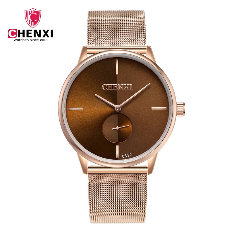 Relógio Analógico CHENXI Com Mostrador Pequeno Em Malha De Aço Inoxidável À Prova D'água Ultrafino De Quartzo Simples