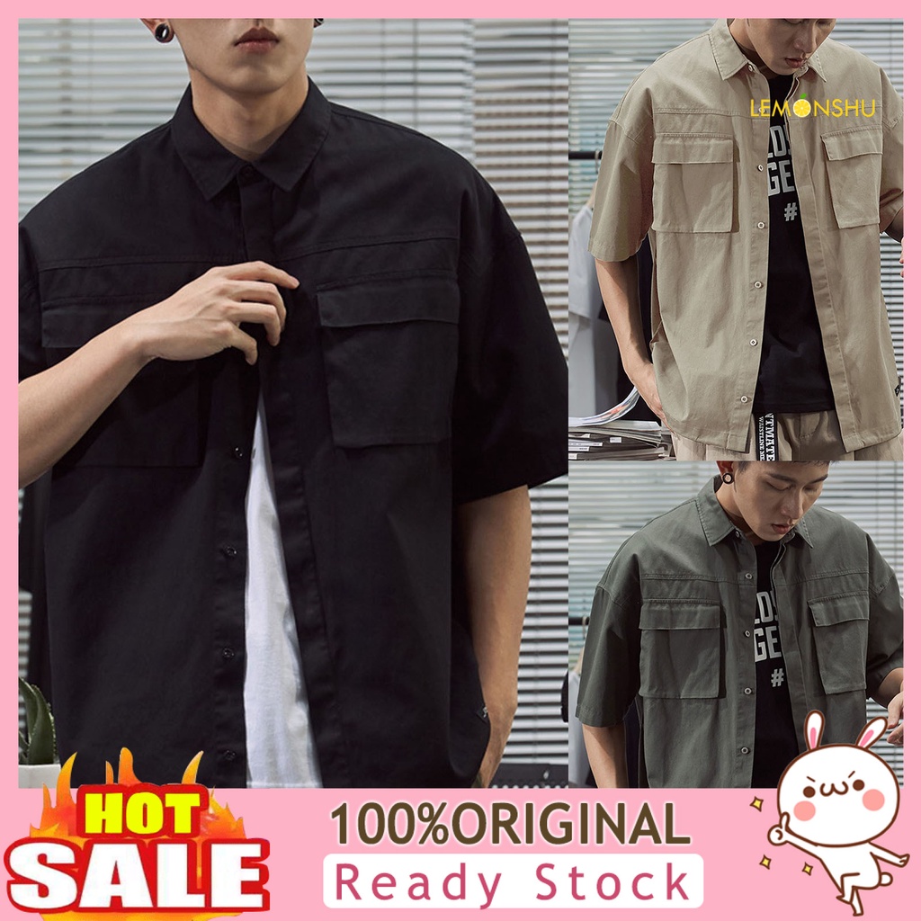 [LHO] Camisa Bolsos De Manga Curta Botões Soltos De Cor Sólida Para Escola