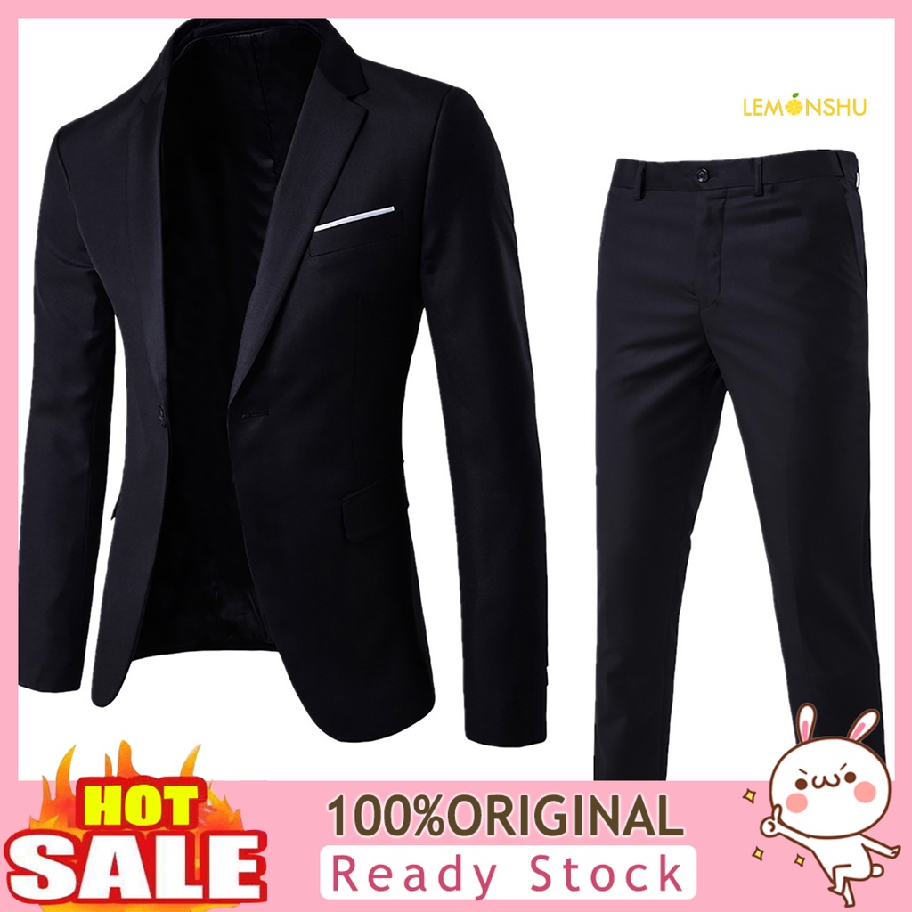 [LHO] 1 Conjunto Homens Calças Blazer Pants Cor Sólida Manga Longa Slim Fit Colarinho De Gola Temperamento Um Botão Bolsos De Fatos Roupas