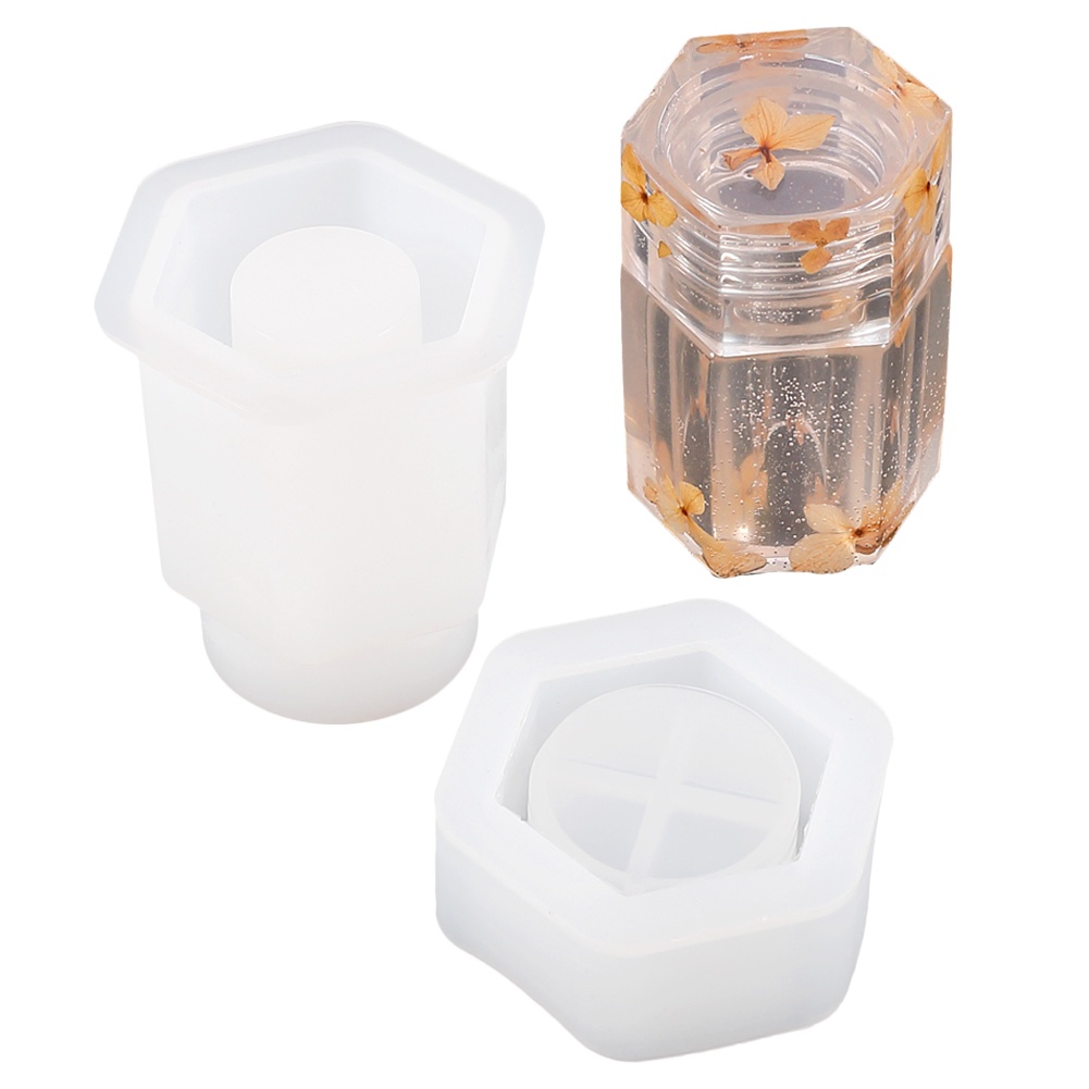 Molde De Silicone Pote Com Tampa Hexagonal
