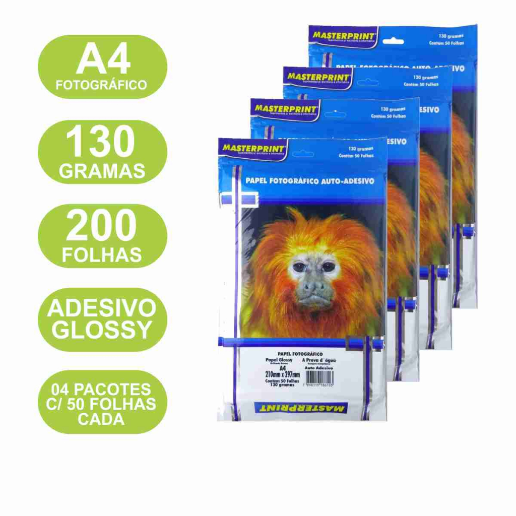 Papel Fotográfico Adesivo Glossy 130gr 200 Folhas A4 210mm x 297mm Papel Foto Qualidade MasterPrint