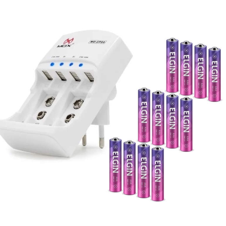 Kit Carregador Mox Com Pilhas Recarregaveis Elgin Duração até 1000 Cargas Escolha o Seu
