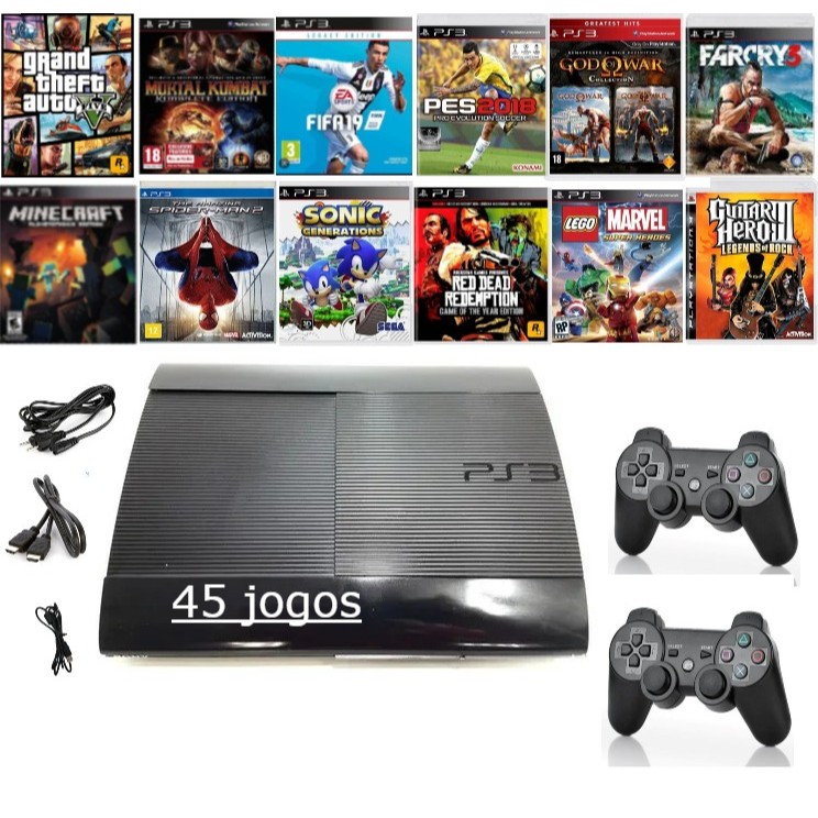 Ps3 Super slim 45 jogos+2controles+ GTA5, Minecraft, Fifa, Mortal kombat