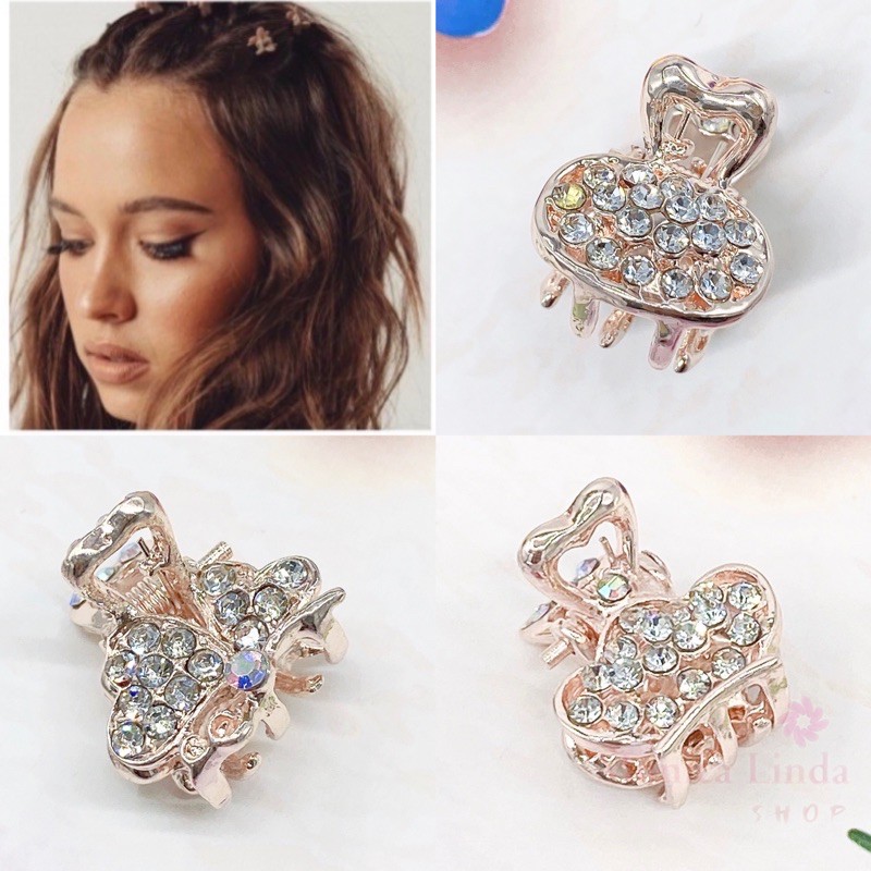 Mini piranha de cabelo feminino-presilha-fofo\dourado com strass acessórios moda
