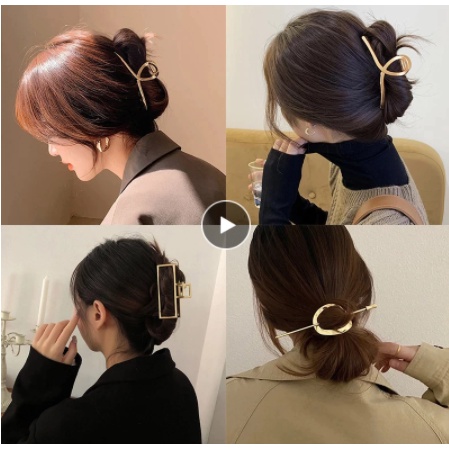 Piranha de Cabelo Metal De Cabelo metal Dourada e Presilha cabelo Prendedor Retangular e Laço