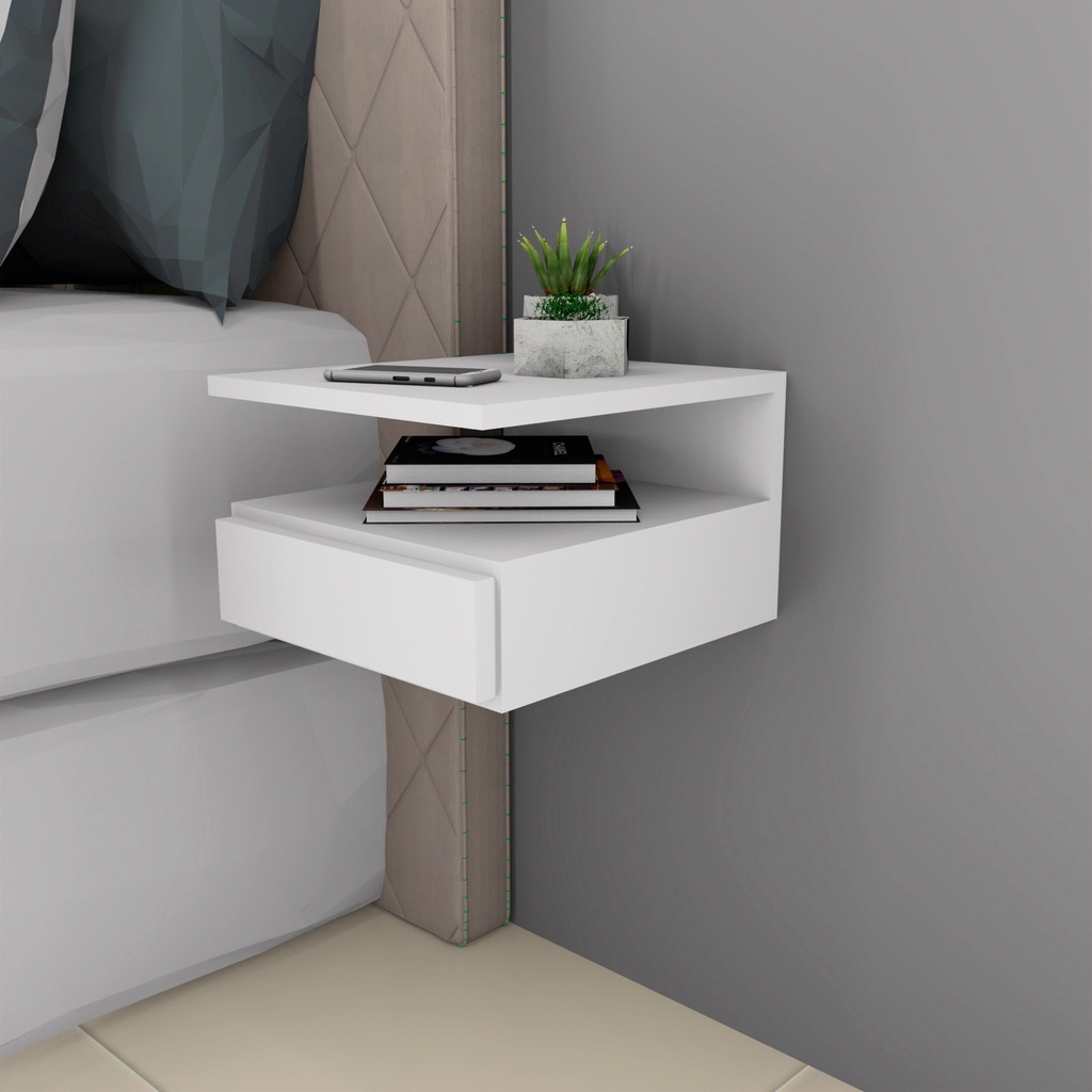 Kit 2 Mesa de Cabeceira Branco Branca Suspensa com Gaveta e Prateleira Mesinha