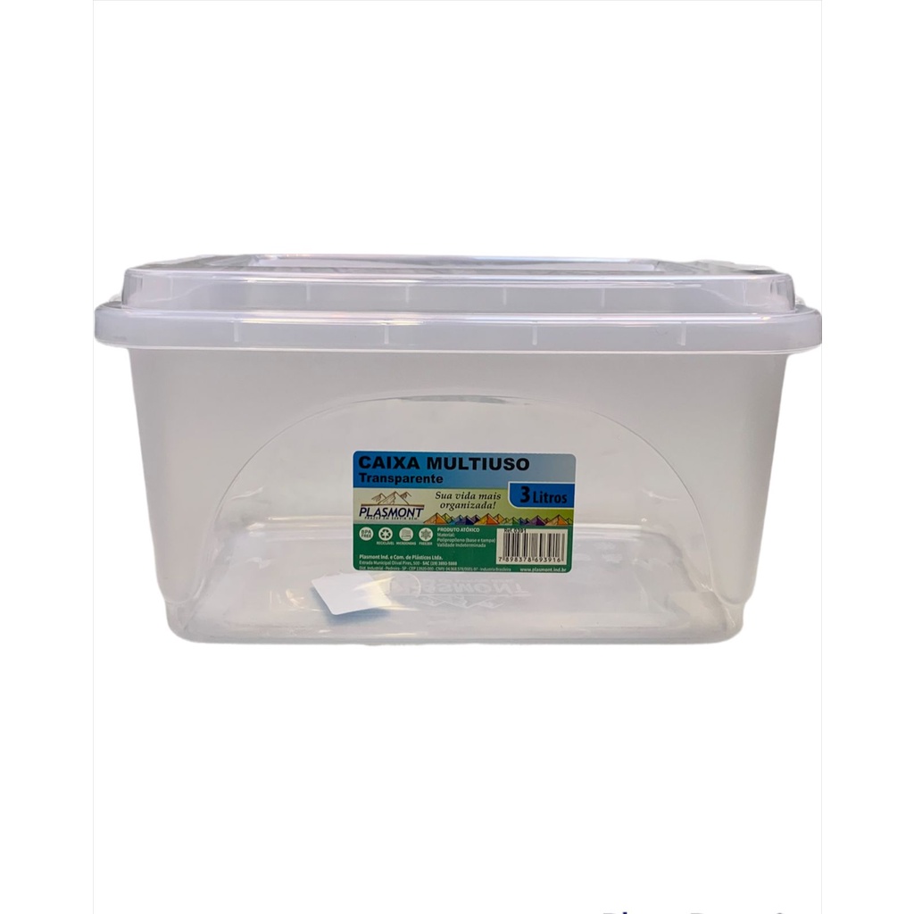 Kit 2 Caixas Organizadoras com Tampa 3 Litros Transparente Com Tampa E Trava