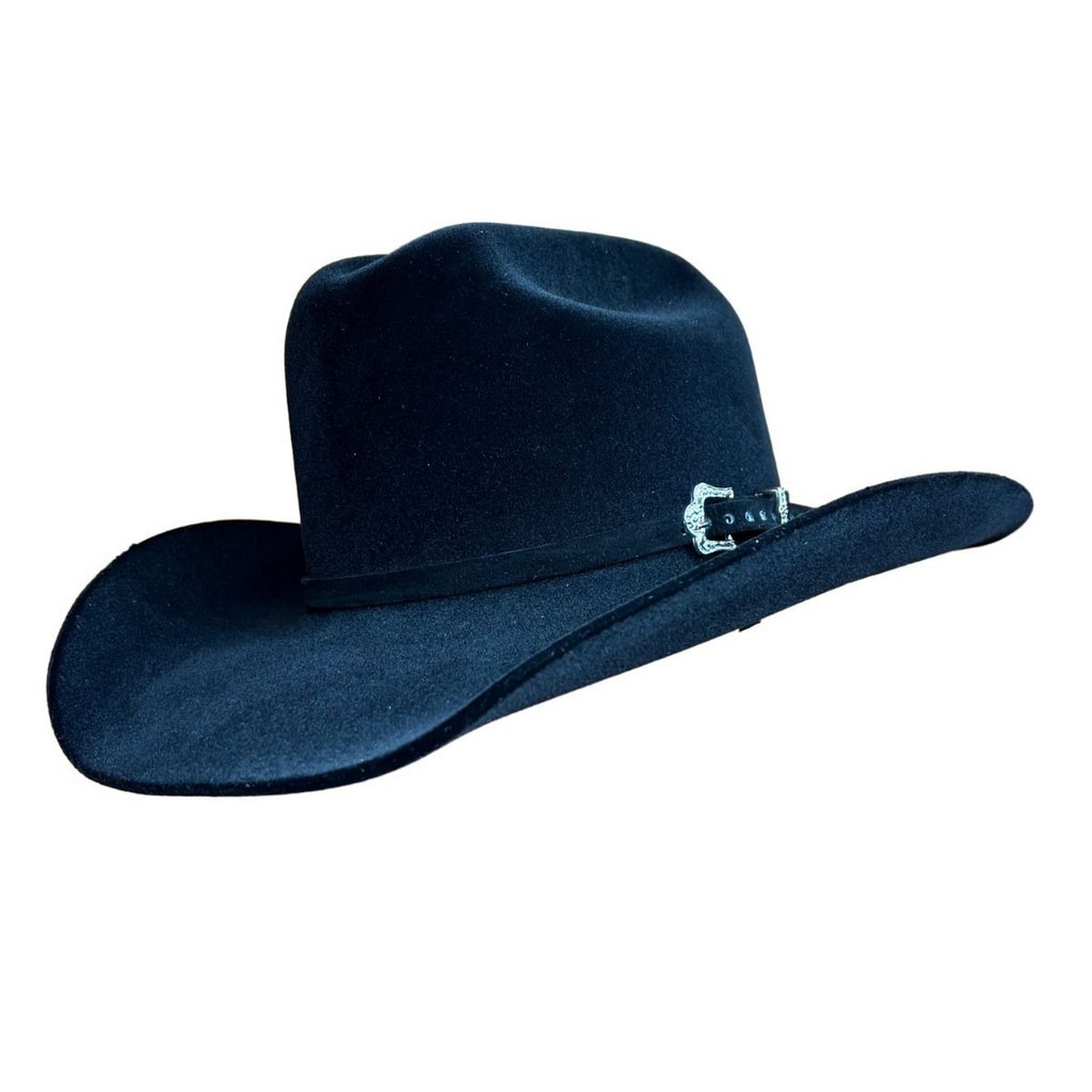 Chapéu Infantil Country Montana Preto Aba 9 Aveludado Unissex Bandinha Veludo Com Fivela