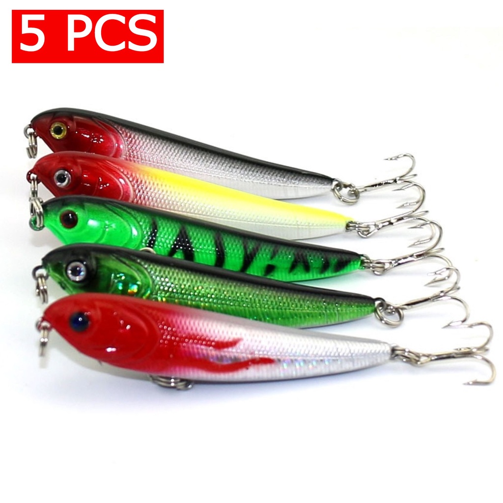 Kit 05 Iscas Artificiais Importadas Pencil De Superfície de 7 cms e 5.7 gramas Pesca Tucunaré Traíra Dourado Robalo Black Bass