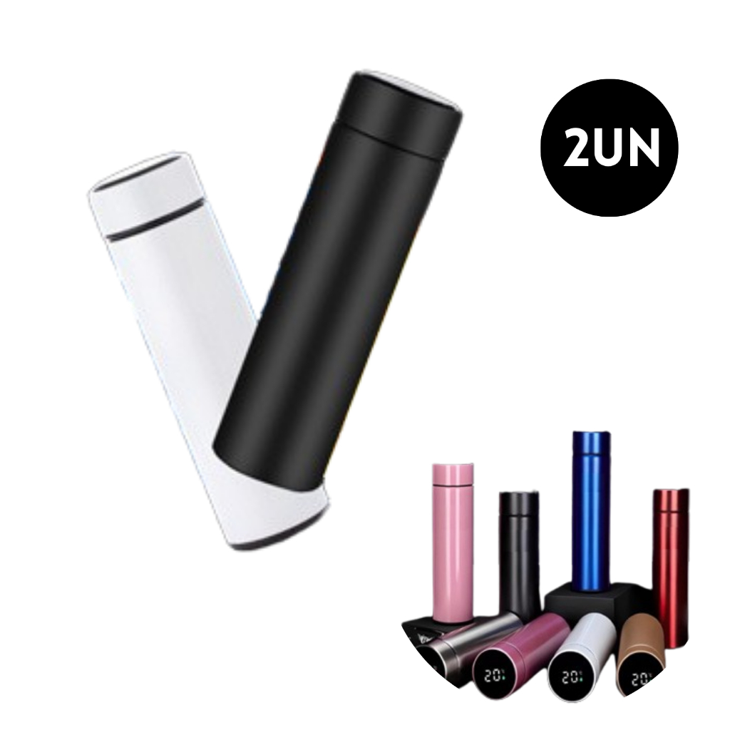 Garrafa Térmica Digital kit 2 Unidades De Aço Inox 500ml Com Led Temperatura Inteligente Para Café Academia Viagens Camping Escritório Squeeze Infantil Portátil