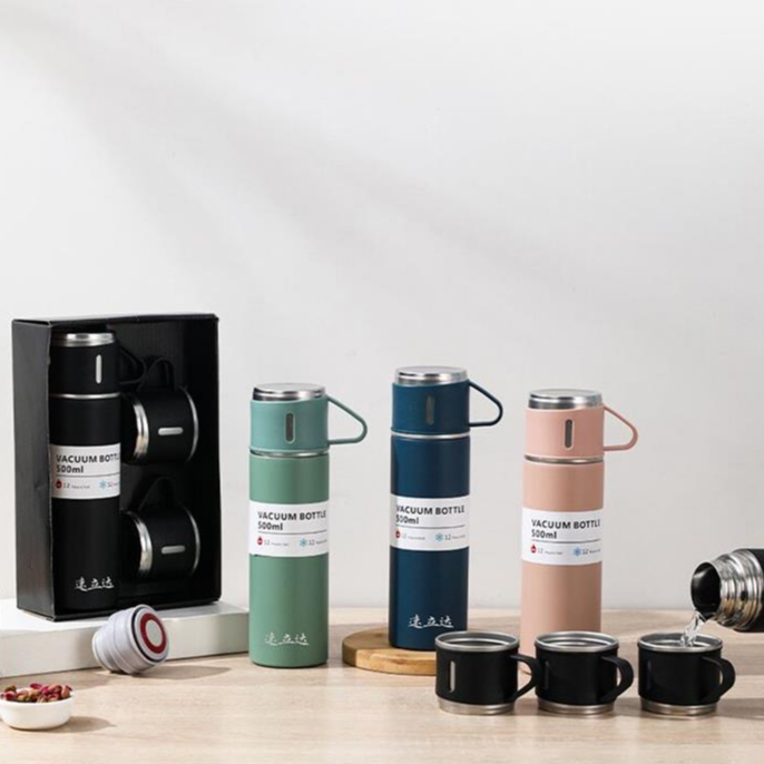 Kit Garrafa Térmica Vacuum Flask Set Inox 1 garrafa + 2 tampa/copo 500ml - bebidas quentes e frias