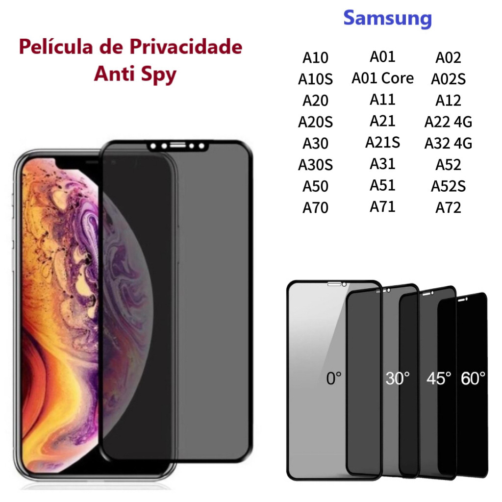 Anti Spy Espionagem Kit 3 Peças Película Privacidade A01 A02 A10 A11 A12 A20 A21 A22 A30 A31 A32 A50 A51 A52 A70 A71 A72