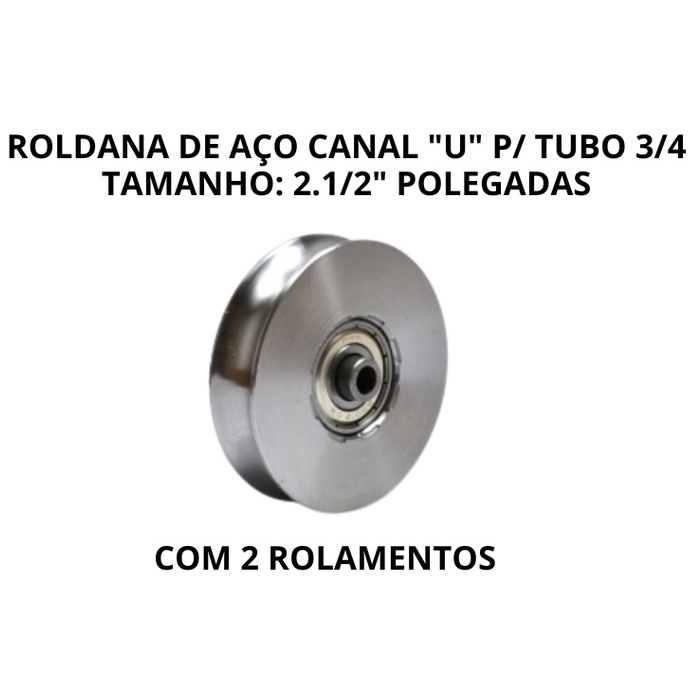 Roldana De Aço Para Portão Deslizante Canal "U" De 2.1/2" Para Tubo 3/4 com 2 Rolamentos