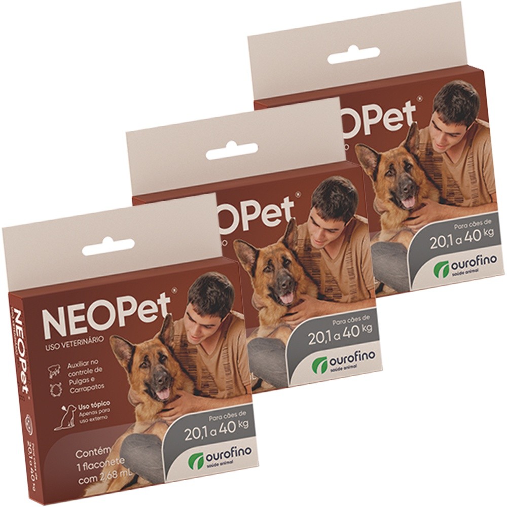 Kit 3 Antipulgas e Carrapatos Neopet 2,68ml Cães 20 a 40Kg - Ourofino Pet