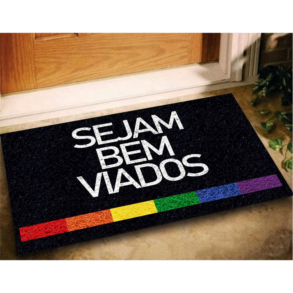 Tapete Capacho Decorativo Entrada Porta Sala, Quarto ou Banheiro - frase Sejam bem Viados LGBT