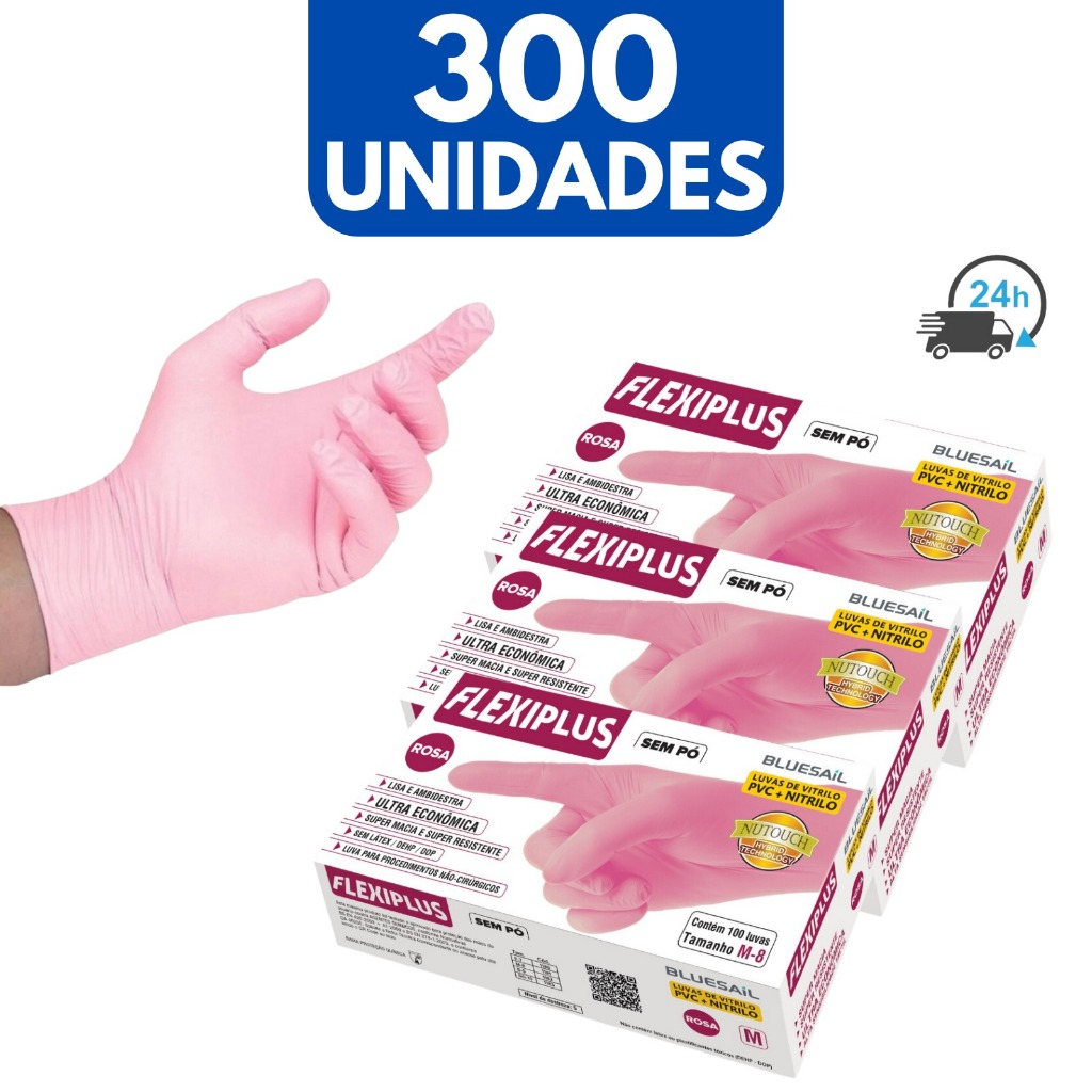 Luva Descartável Nitrilica Rosa Pink Kit 3 Caixas Nitrilo De Procedimento