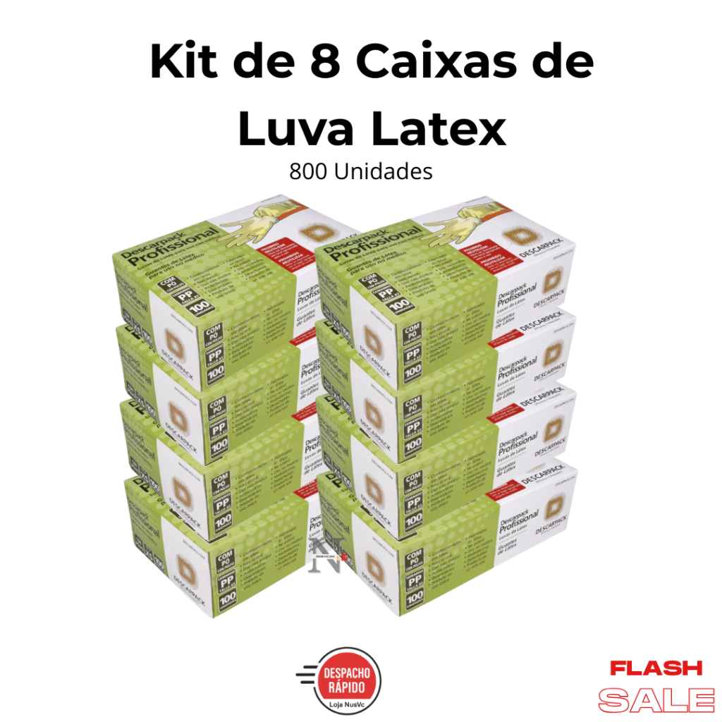 Kit 8 Caixas de Luva Látex Descartável Com Pó - 800 Unidades
