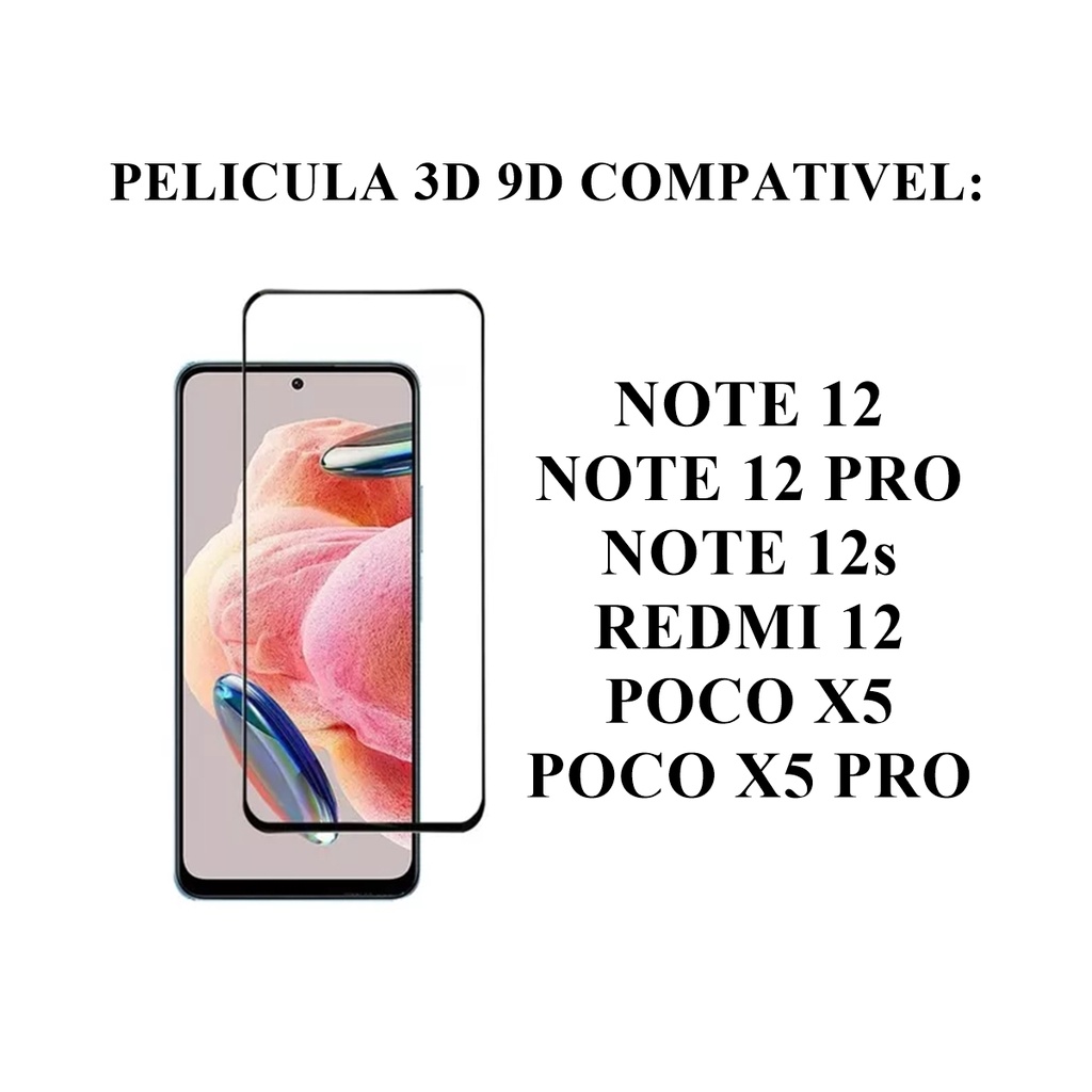 Pelicula Vidro 3D 9D Compativel Note 12s Note 12 Redmi 12 Poco x5 Proteção Tela Celular