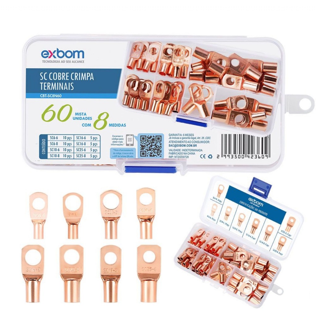 kit Terminal à compressão de Cobre 60PCS variável olhal CBT-SC8N60 EXBOM