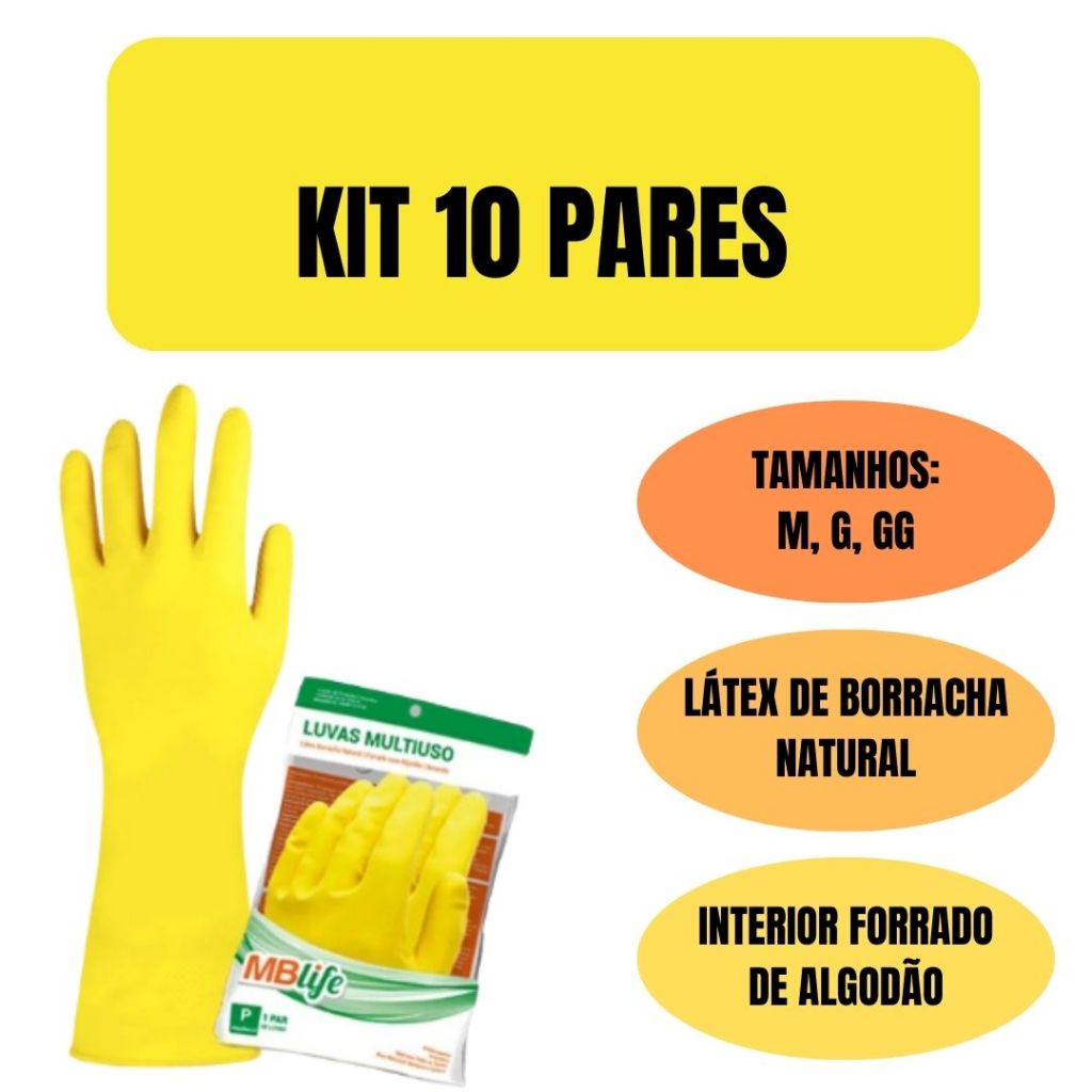 Kit 10 pares Luva De Limpeza Látex Amarela Multiuso Faxina Segurança Laboratório Cozinha Mblife - Medix