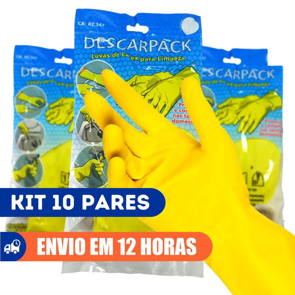 Luva de Limpeza Látex Kit 10 Pares Amarela Antiderrapante Descarpack