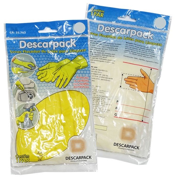 LUVA DESCARPACK DE LATEX PARA LIMPEZA AMARELA KIT COM 10 PARES - TAMANHO G