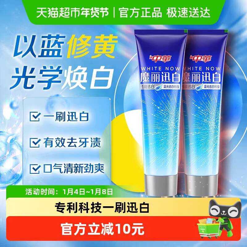 Pasta de dente branqueadora mágica da China, remoção de brilho, remoção de tártaro, hálito fresco, 170g x 2 sabor fresco