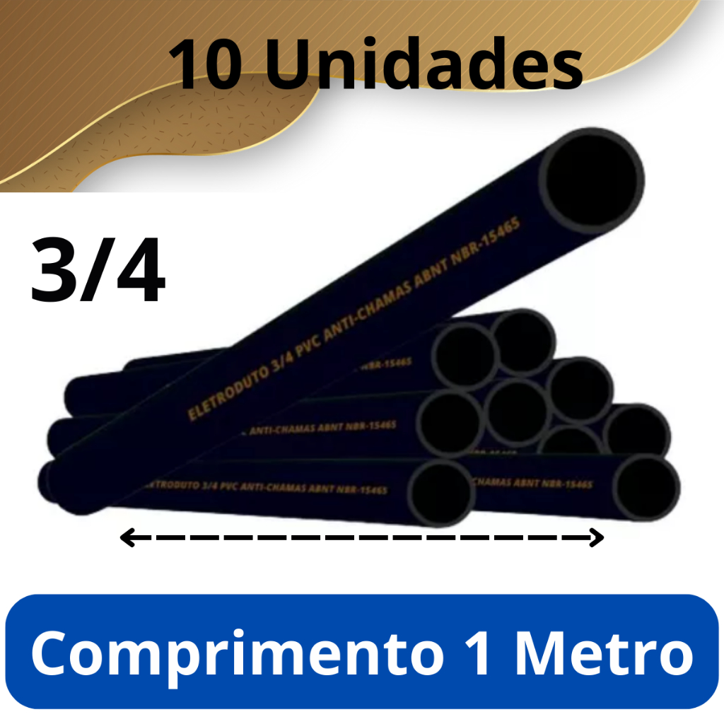 Kit até 10 Metros Eletroduto Conduite PVC Preto 3/4 Rígido Anti-chama Barra 1 Metro