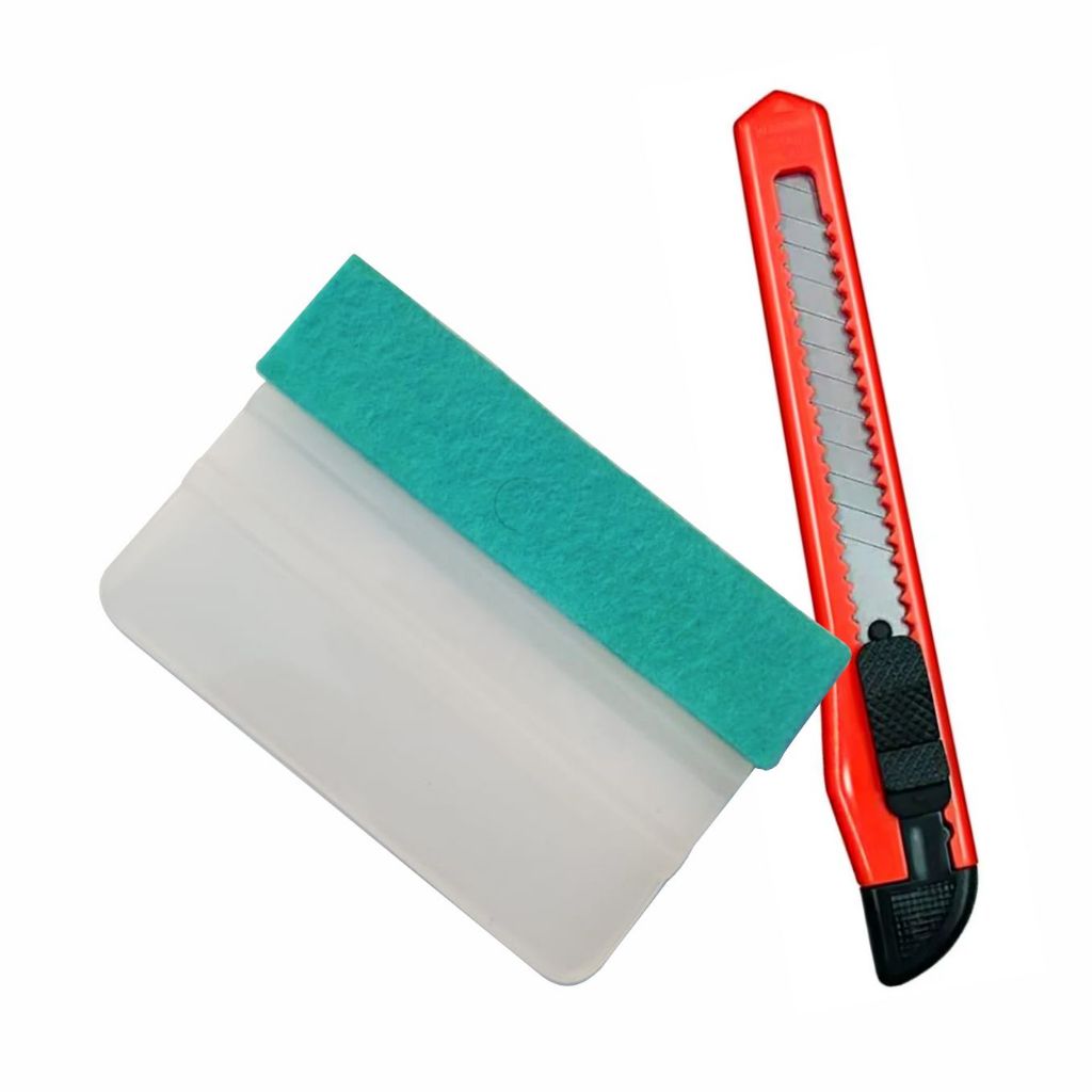 Espátula de Plástico Com Feltro e Estilete em Kit Para Envelopamento Automotivo e de Móveis