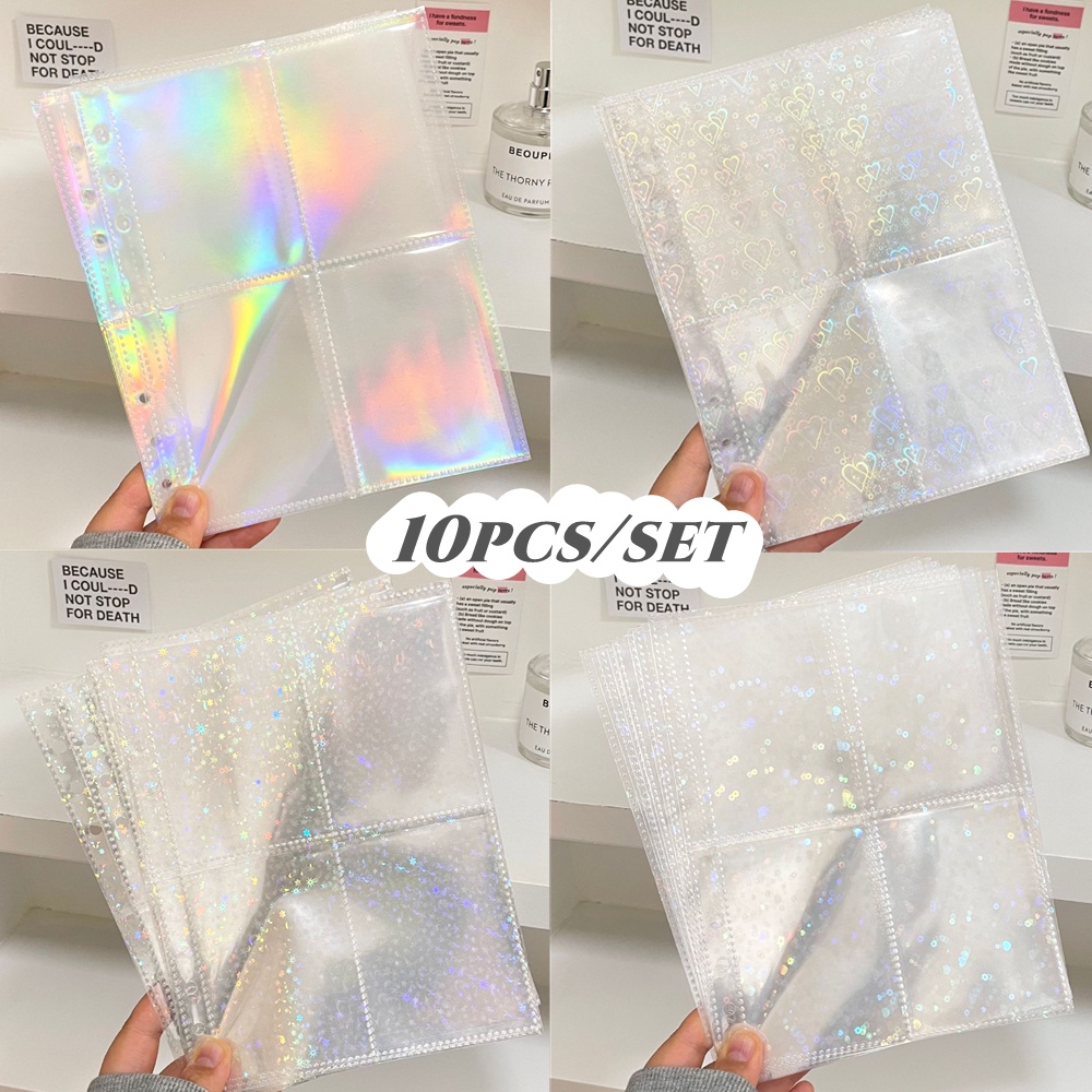 10pcs A5 Laser Dentro Da Página Heart/Flower/Star/Rainbow Photo Card Sleeves Binder Album Páginas De Recarga 4 Grid Photocard Collection Storage