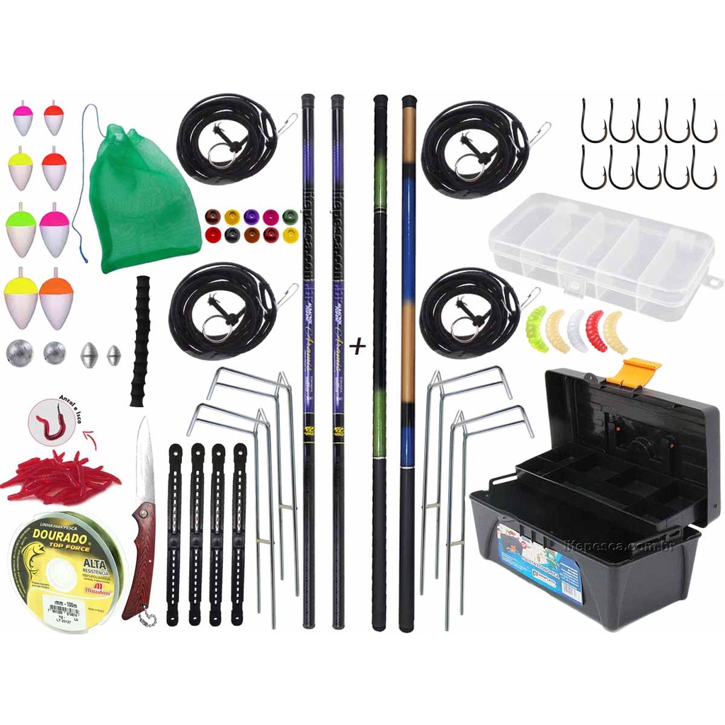 Kit Pesca C/ 4 Varas Telescópicas Carbono (2x 2,10m x 2x 2,70m) + Caixa (Ref. 148)