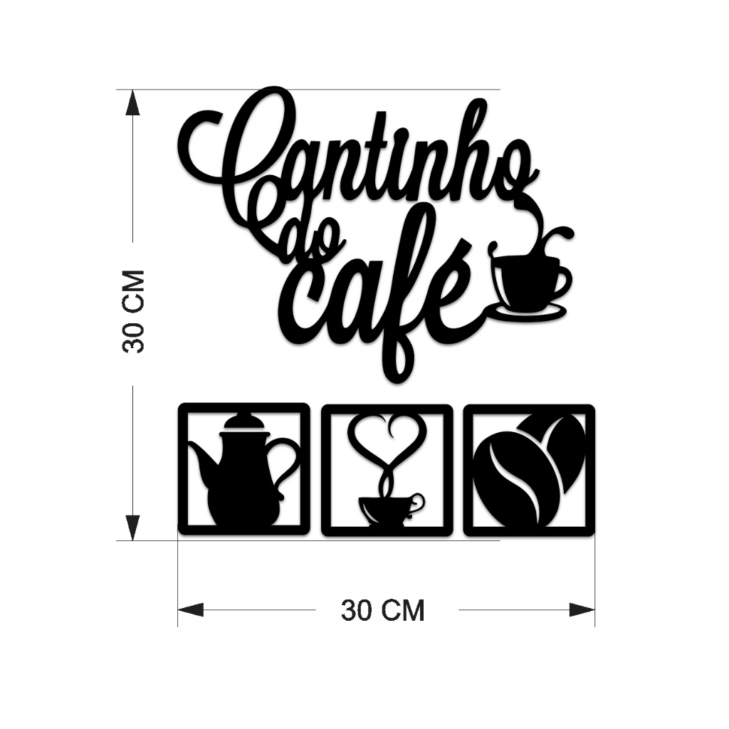 Kit Cantinho do Café 4 Peças no total de 30X30cm Decoração C/Dupla Face