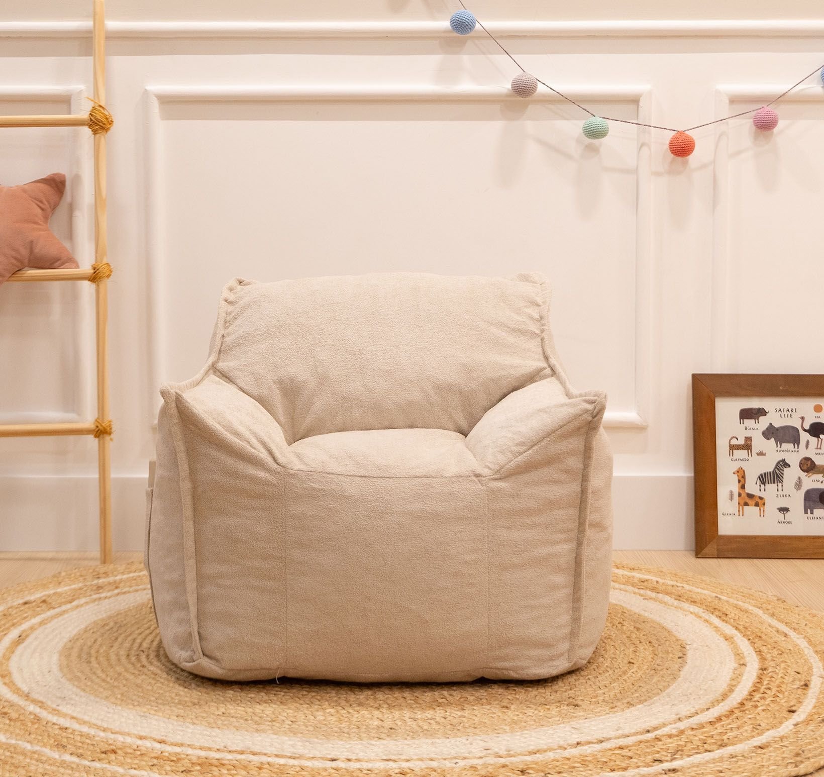 Puff Poltrona Nuvem Infantil Criança Nuvem com Enchimento de Espuma - Tecido Bouclé Areia