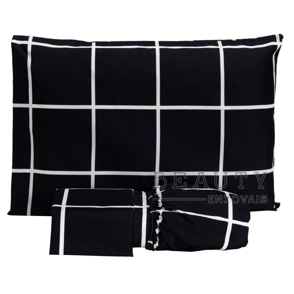 Jogo de Lençol Casal Queen 100% Algodão Percal 200 Fios Solteiro com Elástico Ponto Palito Roupa de Cama