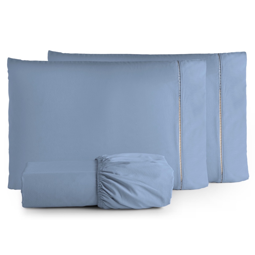 Jogo de Lençol 03 Peças 400 Fios Cama Solteiro, Casal, Queen, e King Micropercal Ponto Palito Super Macio