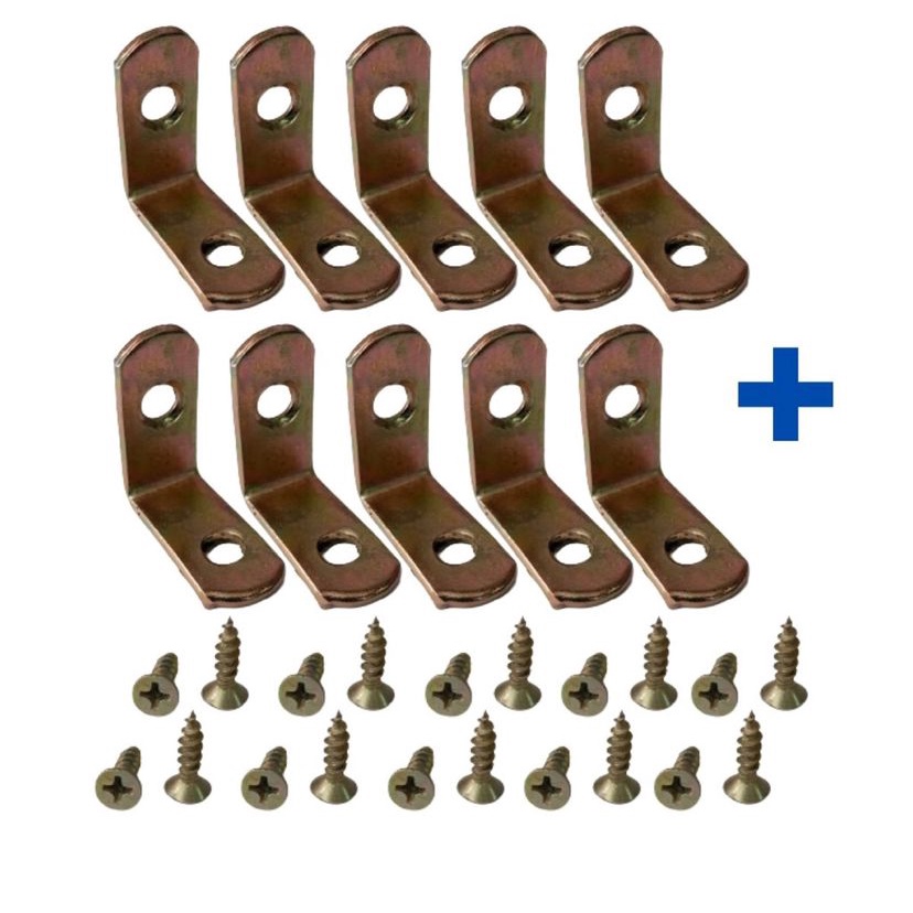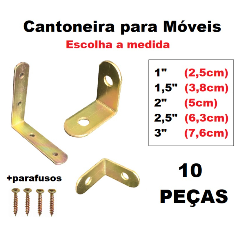Cantoneira L Reforço Moveis Bicromatizada Para Gavetas Cadeiras Mesas Móveis em Geral Incluso Parafusos Pacote com 10 Unidades de 1 a 3 polegadas