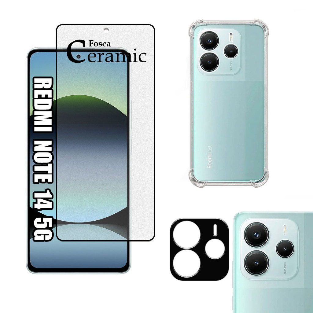 KIT Para Xiaomi Redmi Note 14 5G - Película Fosca de Cerâmica 9D + Capa + Câmera