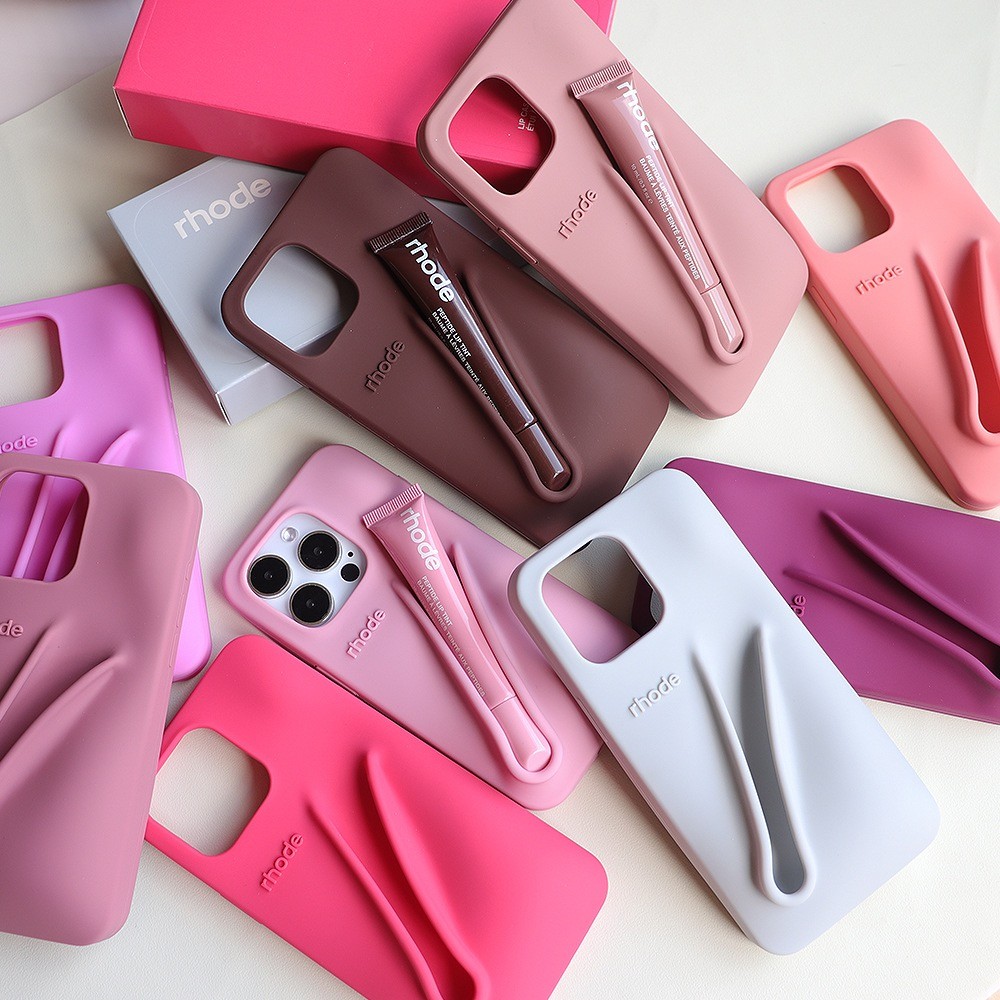 rhode Batom + Capa De Telefone Portátil Suporte De Brilho Labial Ins Silicone Macio Para iPhone 16 15 14 Pro Max Plus