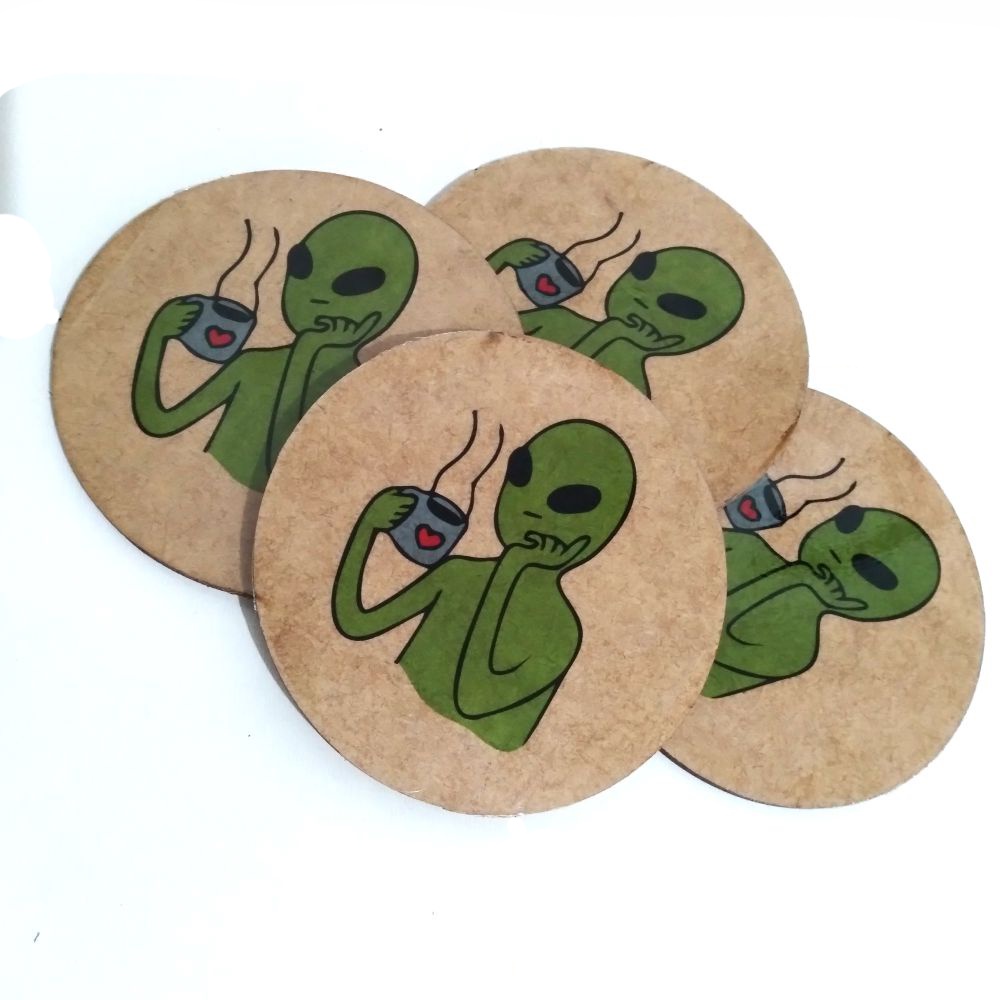 Porta Copo tema Et - 9x9 cm MDF - Porta Copo Cerveja Bebida Bar Whisky Café Chá Alien alienígena extraterrestre