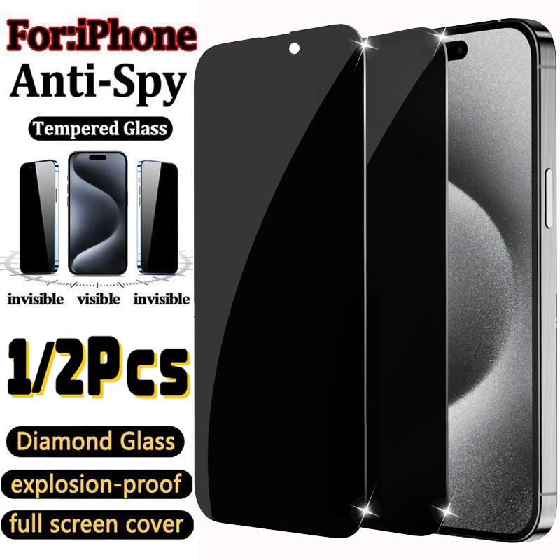 1/2pçs Melhor Protetor De Privacidade Completo De Tela Para iPhone 15 14 13 12 11 Pro Max Plus Mini X XR Xs 8 7 6s 6 SE Vidro Antiespionagem