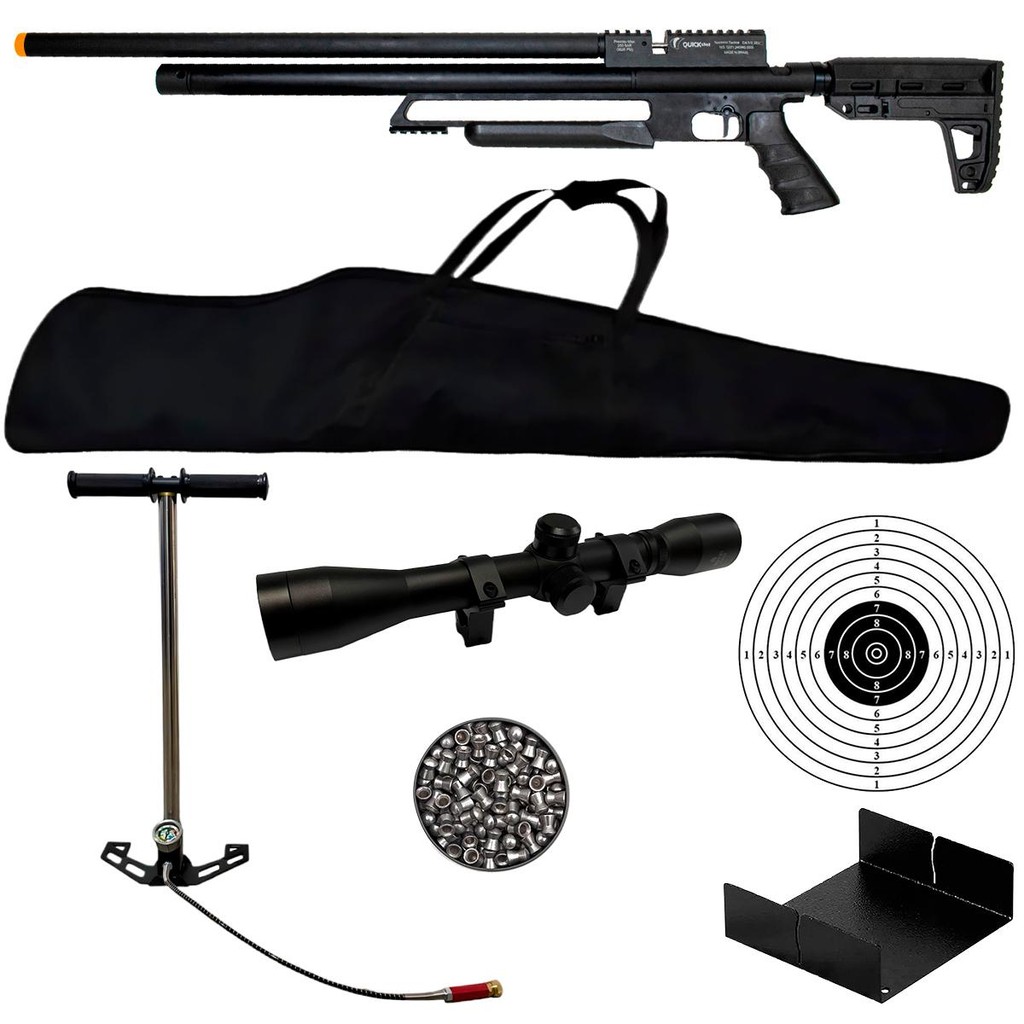 Carabina de Pressão PCP Tactical 5.5mm Quickshot+Bomba+Capa+Luneta 4x32+Alvo+Porta Alvo+Chumbo
