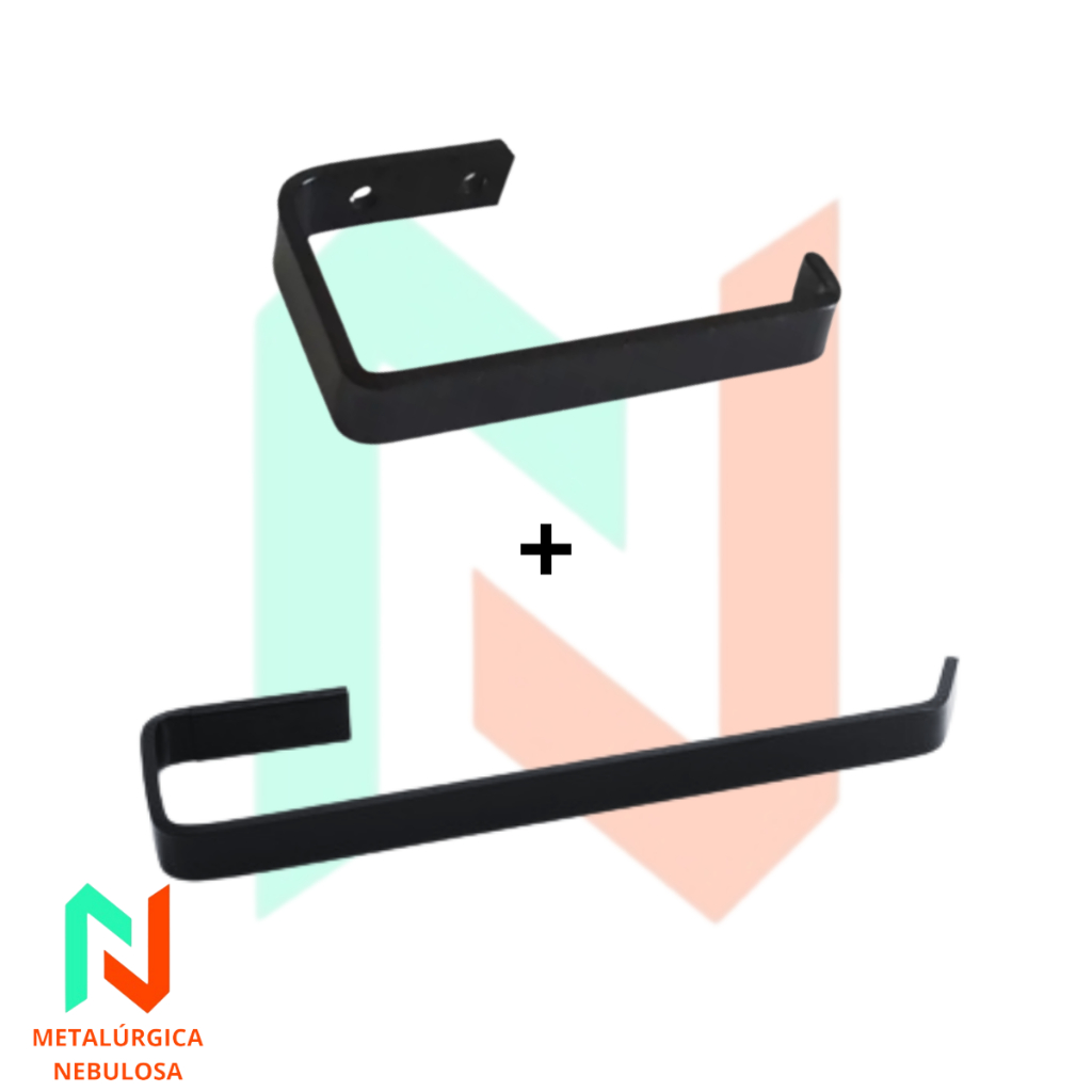 Kit Porta Papel Higiênico Com Suporte Para Toalha de Rosto Preto Luxo Banheiro