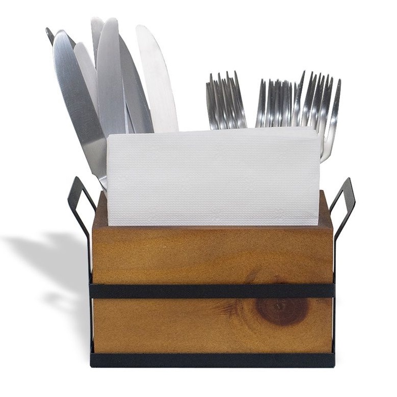 Porta Talheres e Guardanapo de Mesa Organizador de Talheres Rústico Madeira Mesa Posta Faqueiro
